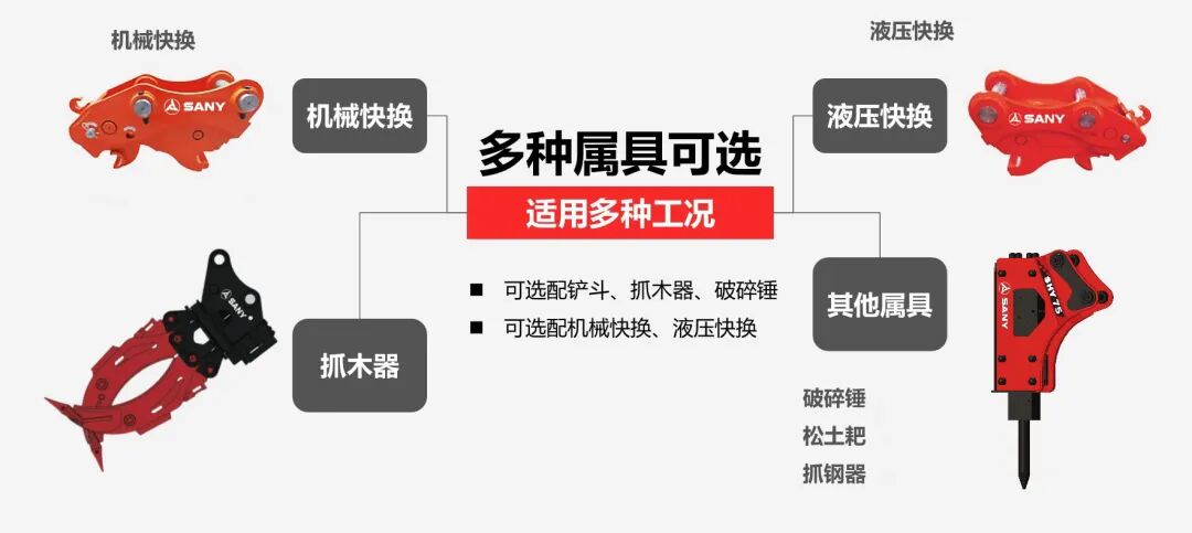 新增辅助液压管路,轻松兼容多种林业属具,再搭配原厂智能多功能手柄,真正实现“一机多用”。无论是木材抓取、林间修整还是物料搬运,都能高效切换、轻松应对,极大提升设备利用率和作业灵活性,收益倍增!