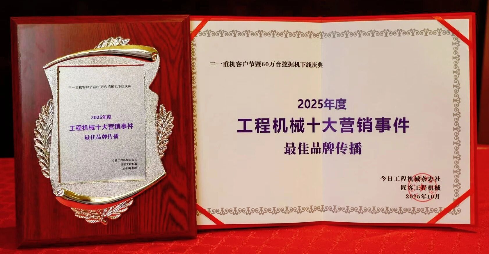 2025年10月22日,“2025年度工程机械十大营销事件”在江苏常州重磅发布。“好体育综合app下载重机客户节暨60万台挖掘机下线庆典”荣登“2025年度工程机械最佳品牌传播事件”。