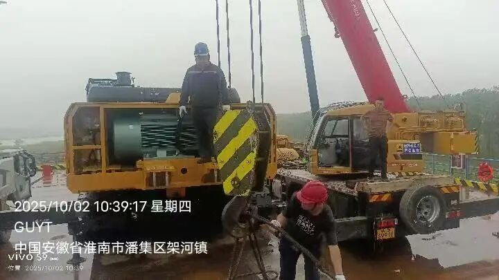 安徽某客户新到一台抓料机,客户生产任务紧迫。服务人员张聪和张文无惧恶劣天气,冒雨投入设备安装工作,以专业与汗水及时满足了客户的紧急需求,确保设备顺利投产。他们以专业和担当诠释了坚守与责任。