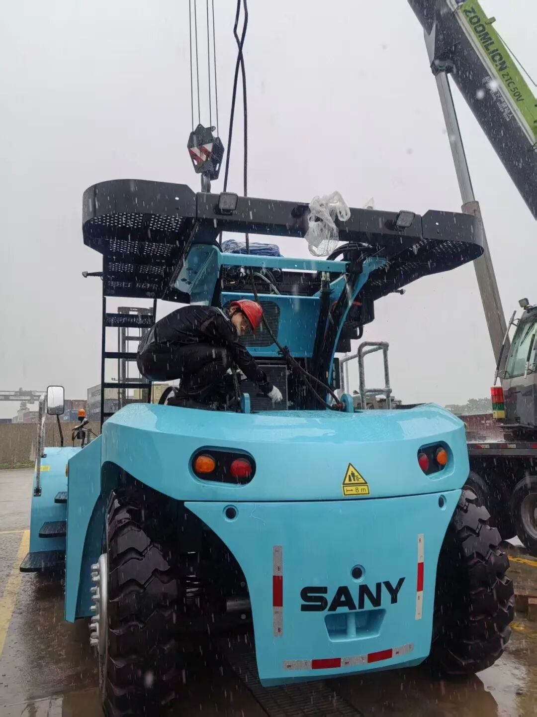 服务工程师陈建在一次设备交付任务中,用长达14小时的坚守,完成了一项特殊的挑战。从日升到夜幕,他分秒不停,成功将湖南第一台纯电堆高机安装并调试完毕,完美交付至长沙集星集装箱码头。这忙碌的十四个小时,见证了整个港口的白昼与黑夜,也见证了他用专业与汗水,为绿色港口的建设写下的坚实注脚。