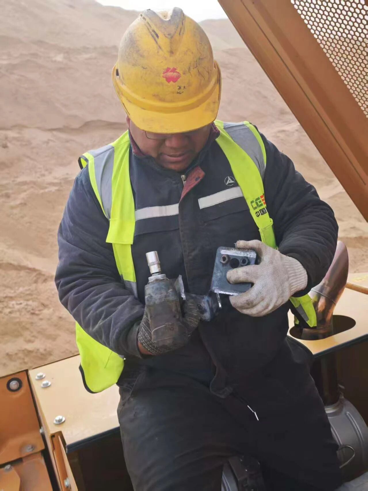 客户几次想上前帮忙,都被郭峰婉言劝回。半个多小时后,当郭峰站起身时,浑身已被沙尘裹满,嘴唇干裂得渗出血丝。随着挖机轰鸣响起,散热风扇平稳运转,危机成功化解,郭峰才长长舒了口气,露出疲惫却欣慰的笑容。“这么大的风沙,你真是救了我的工期!” 客户紧紧握住他的手,感激之情溢于言表。郭峰从包里掏出保养手册,细心叮嘱:“矿区粉尘大,记得每周检查一次支架紧固情况,有任何问题,随时联系我!”