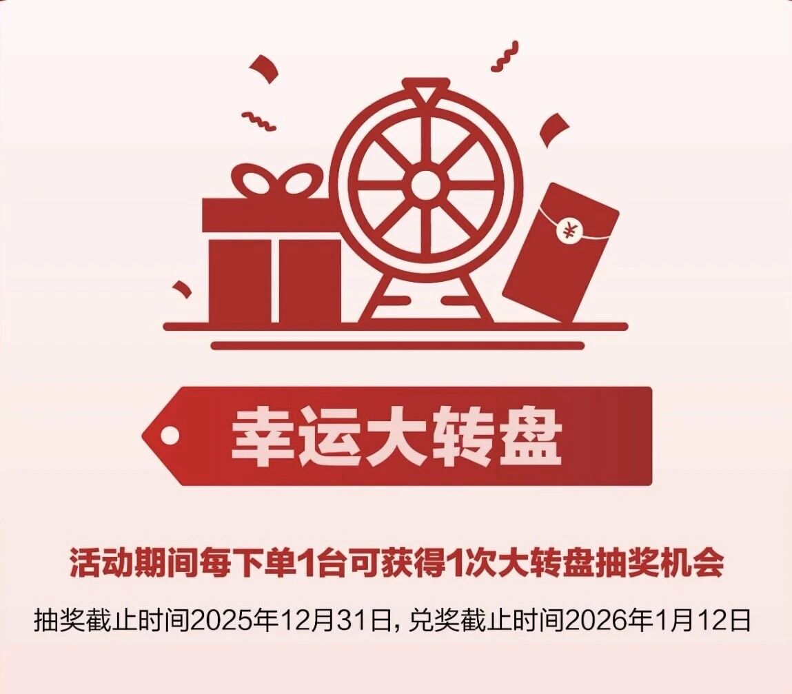 活动期间每下单1台设备,即可获得一次大转盘抽奖机会!豪华大奖等您来拿!