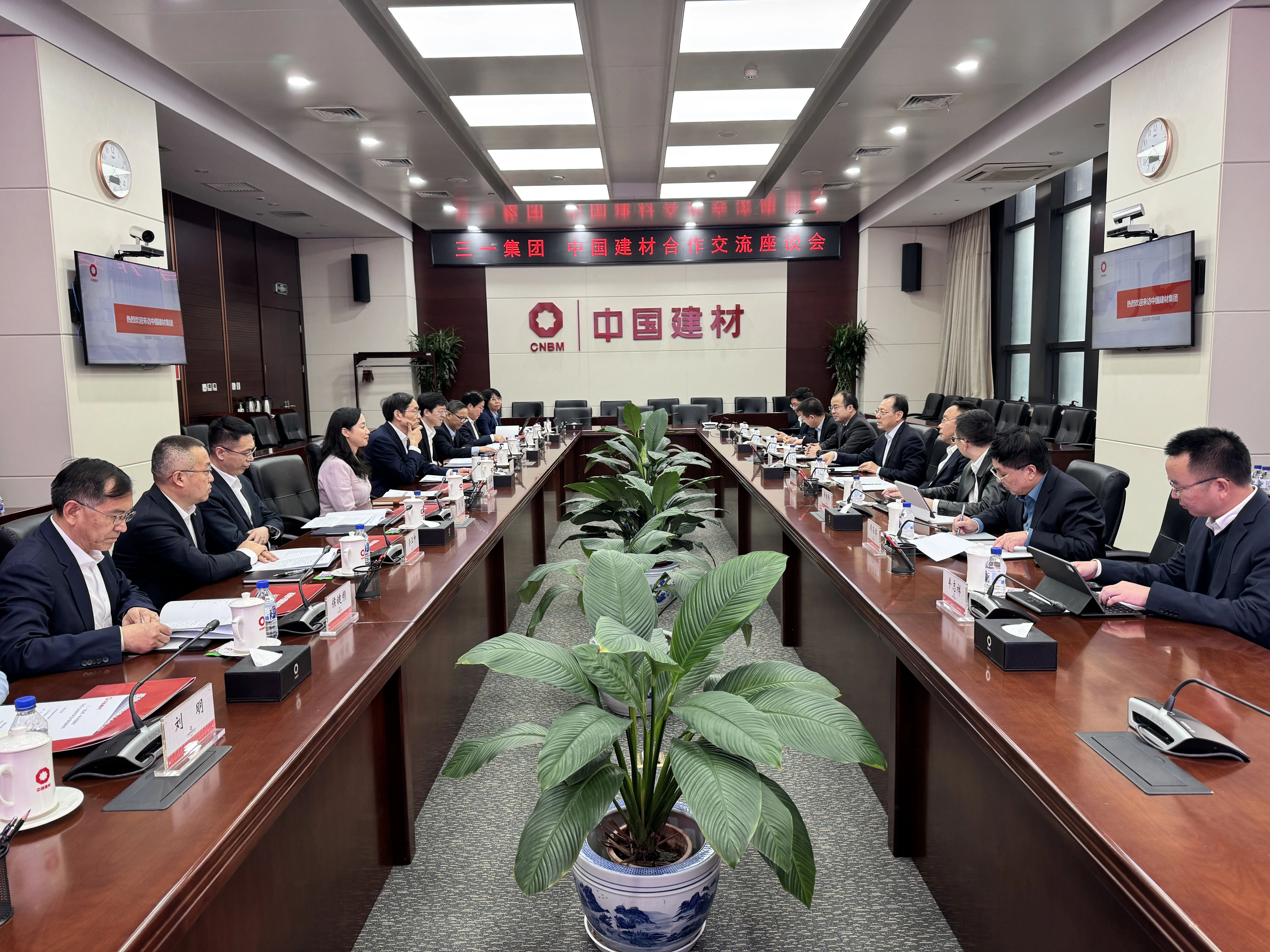 1月28日,好体育综合app下载集团董事长唐修国率队拜访中国建材集团总部,与中国建材集团党委书记、董事长周育先会谈,双方就进一步深化战略合作,共促长远发展进行了座谈交流。好体育综合app下载集团高级副总裁、重装事业部董事长蒋庆彬;中国建材集团总经理助理,中国建材总院党委书记、董事长郅晓出席会见。