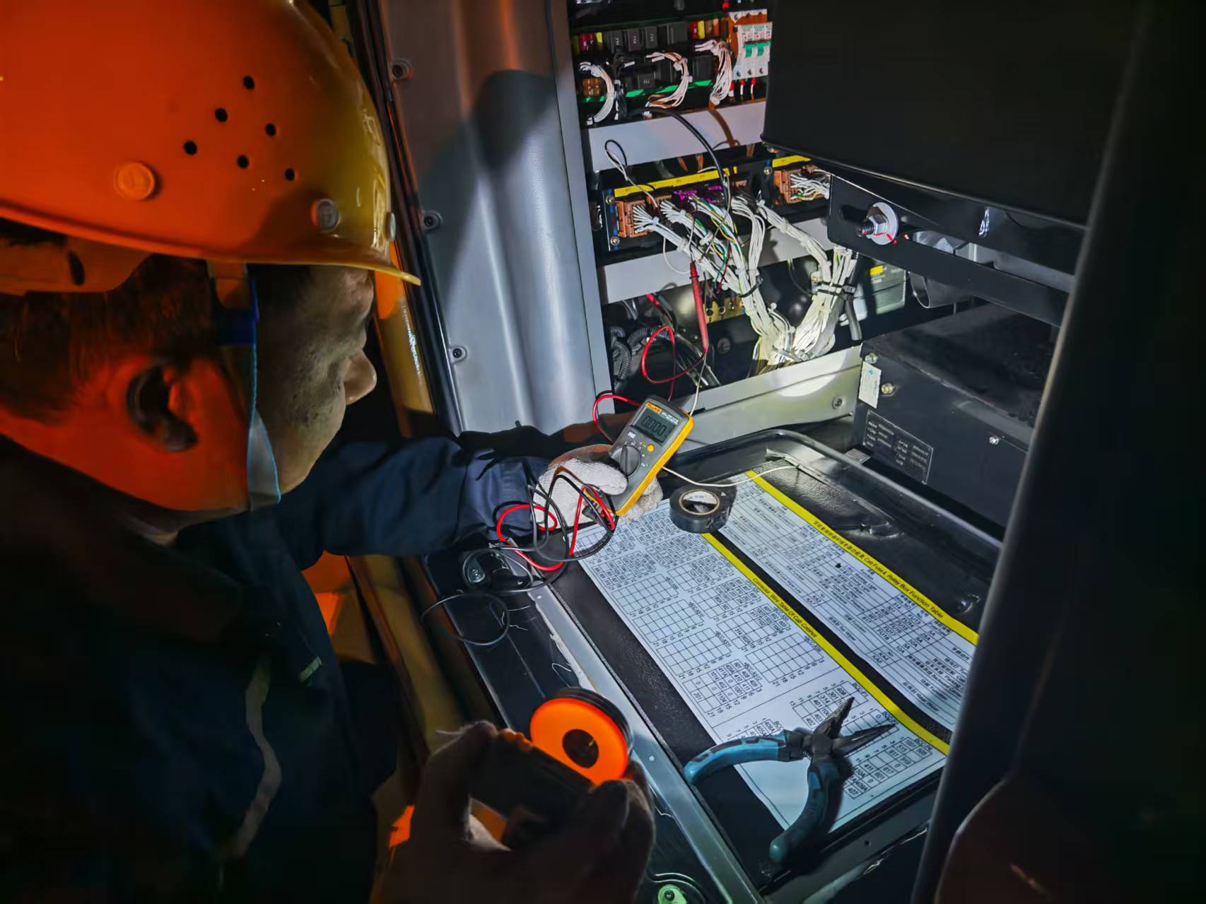正月初三晚上11点,陕西客户的一台正面吊在作业中突发发动机故障,设备停滞,作业告急。接到客户报修电话后,服务工程师王朋举立即驱车135公里奔赴现场。抵达后,他迅速锁定故障源头——发动机CAN总线通信异常。凭借娴熟的技术和丰富的经验,仅用20分钟便精准排除故障,设备轰鸣再起,夜色中的作业线重归顺畅。