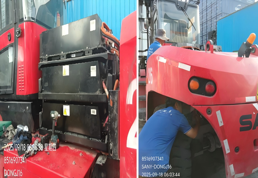 面对客户重叉突发BMS报警,董军火速到场,诊断为5号电池组问题,并紧急协调动力电池于当晚22点到货。为保障客户设备次日正常作业,团队连夜展开电池更换作业,克服夜间作业诸多不便,持续奋战至次日凌晨6点,最终顺利完成动力电池更换,获得客户好评。