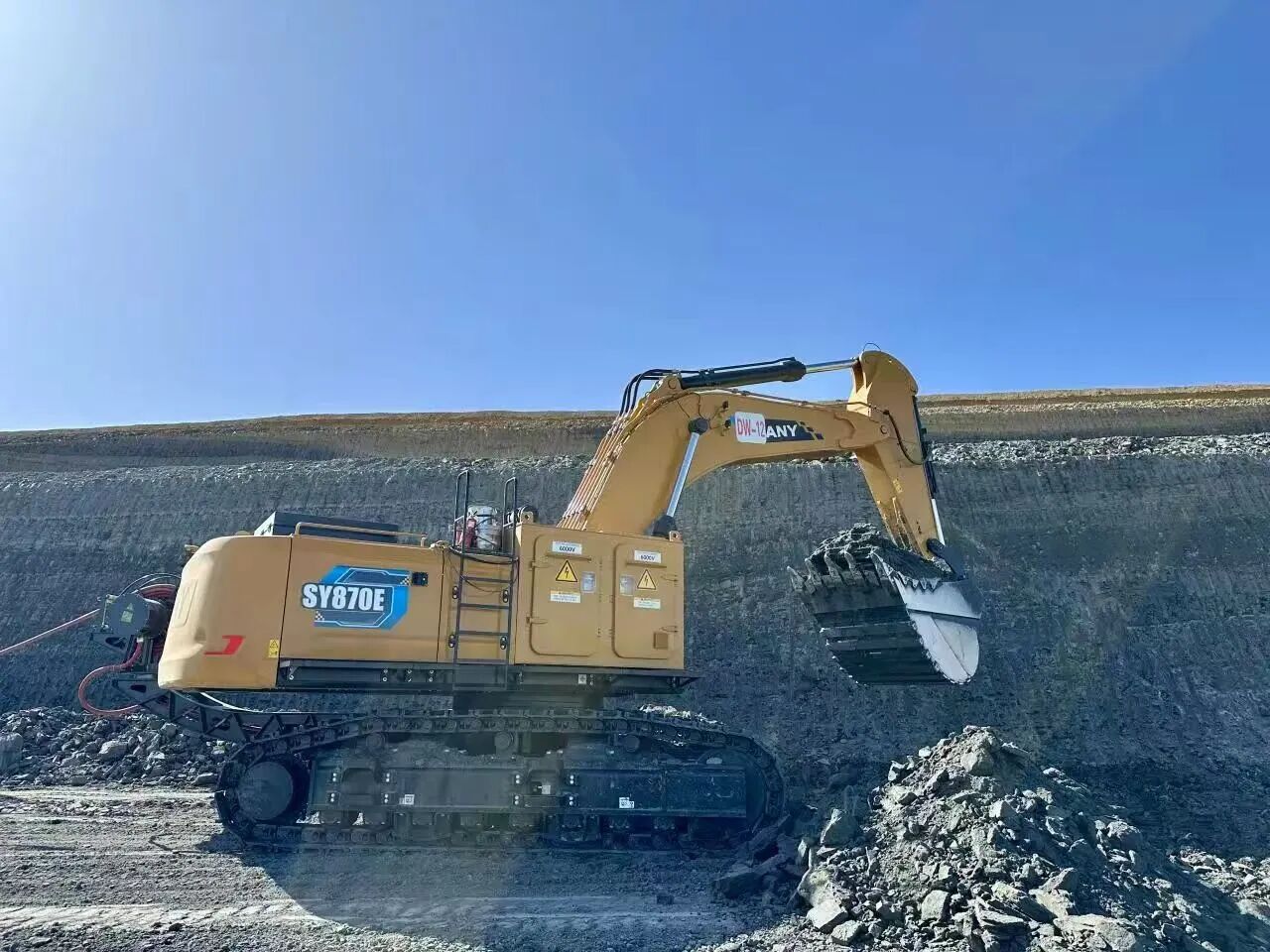 SY870E拖电挖掘机——带着“绿电”和“硬核实力”强势登场,让你的矿山从此告别黑烟滚滚,迎来“绿色智慧矿山”的新时代!