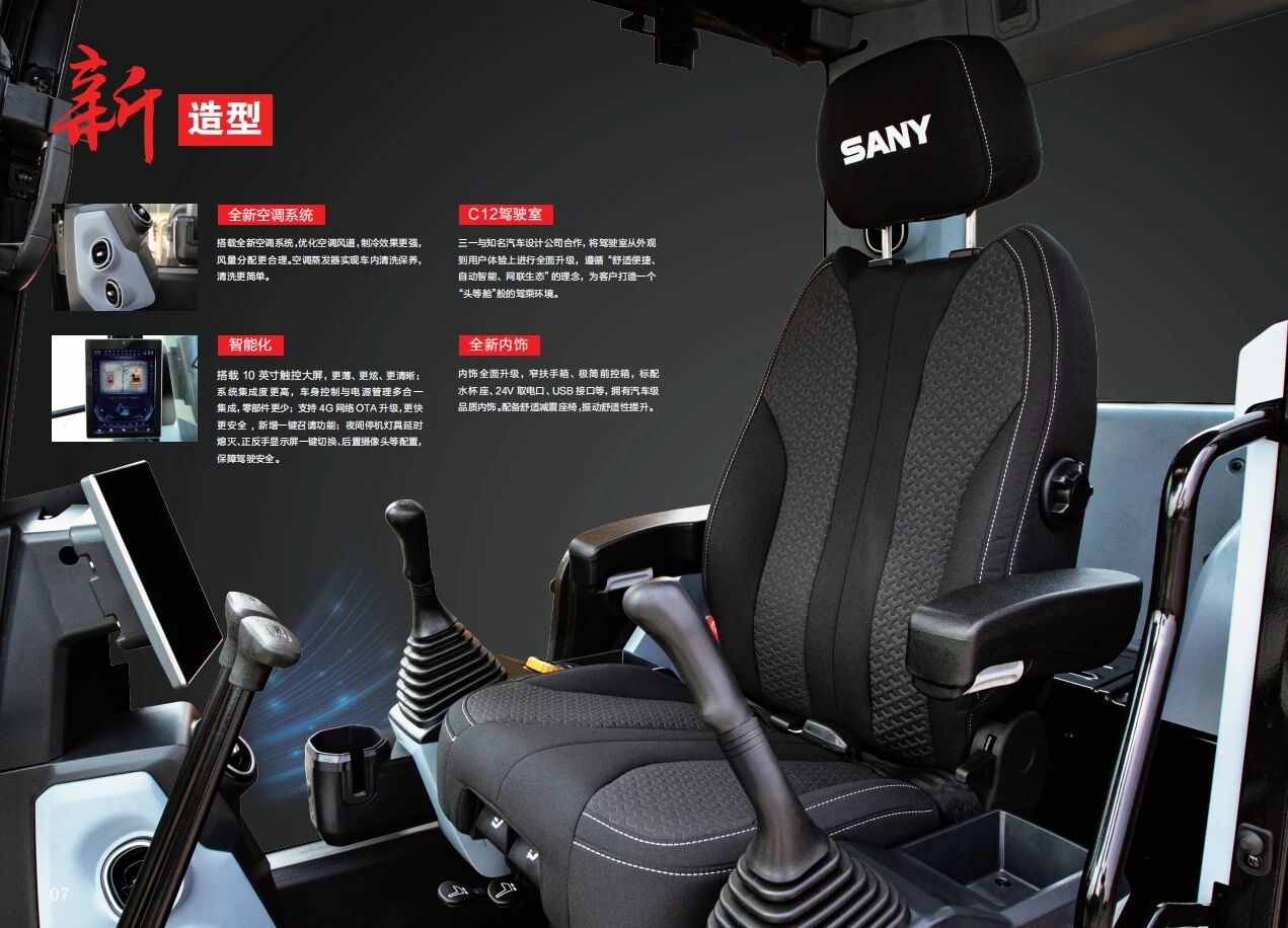 全新内饰:座椅升级为高包裹记忆棉,减震效果拉满,长时间作业也不易疲劳,操作视野更开阔。