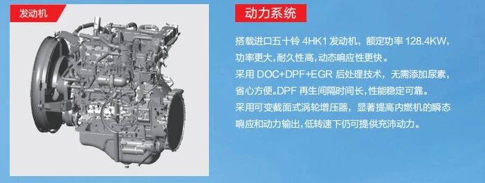 搭载原装进口五十铃4HK1发动机,额定功率128.4kW,动力强劲还耐造。采用DOC+DPF+SCR后处理技术,无需添加尿素,省心又环保。配备可变截面式涡轮增压,哪怕在高原环境,也能持续输出稳定动力,作业效率不打折。全新升级14D减速机,回转能力提升,斜坡作业更稳,回转启动更快,干活节奏更顺。