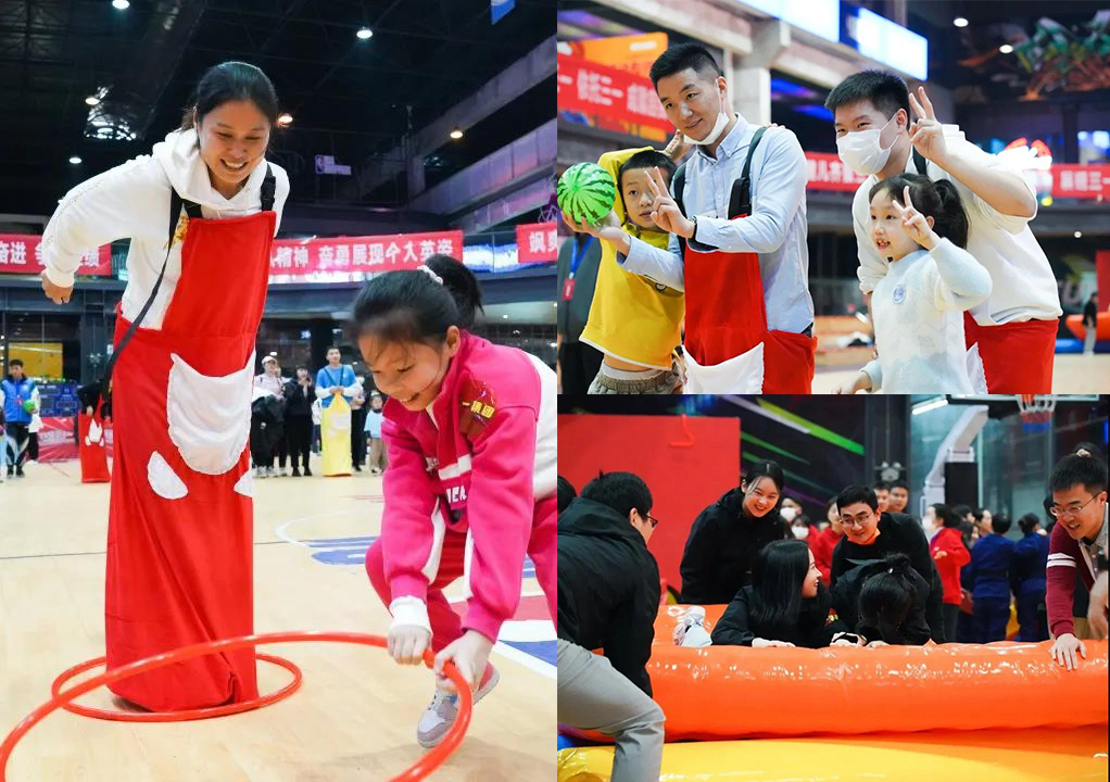 本次运动会集趣味性、娱乐性、协作性和竞争性于一体,既是力量的角逐,又是智慧的较量;既是个人运动水平的展示,又是对团队协作能力的检验,设有时空巨轮、节节高升、怒火卡丁车、小马快跑、袋鼠运瓜、车轮滚滚等7个趣味项目和亲子项目。
