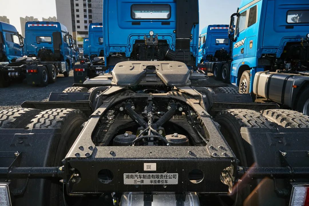 搭载汉德7.5吨大轮距前桥配9片多片板簧,以及汉德16吨双级轮边减速中后桥,速比:5.262,配10片4骑马平衡悬架,此外还对驾驶室后悬置横梁进行加强,重载版江山·信525是专门为大件运输、重载运输、复合路况运输打造的高承载力车型。强悍车桥结构,高承载力材质选用,使得重载版江山·信525能在阿尔金山矿区、5000米海拔以上路况,动力澎湃!如履平地!