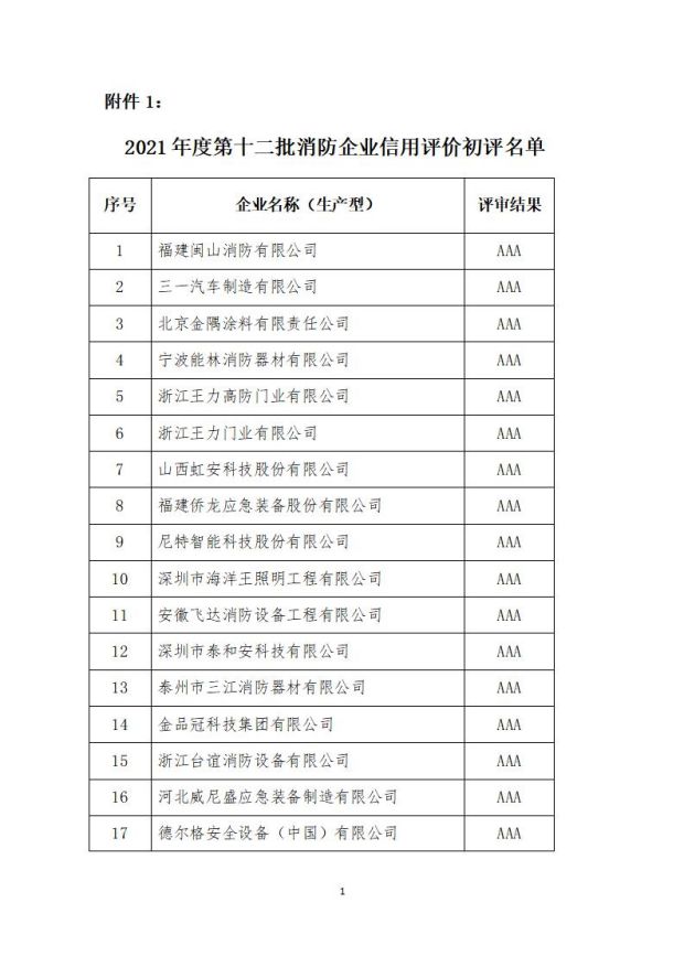 近日,中国消防协会在其官网发布了《2021年度第十二批消防企业信用等级评价名单》,好体育综合app下载应急装备公司获评信用级别最高的AAA级,名单于11月24日至12月1日公示。
