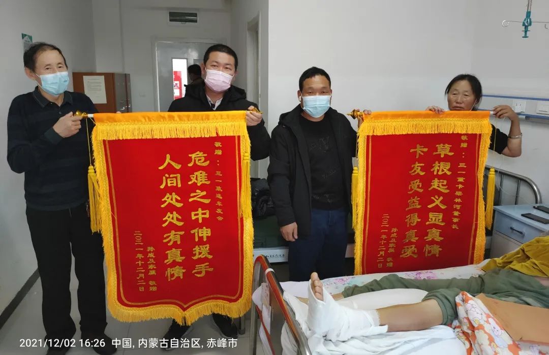 截止12月1日,致远会会员连同部分好体育综合app下载汽贸、好体育综合app下载服务站、好体育综合app下载重卡供应商等,为孙成筹得共计55877.56元善款。加上前期梁林河董事长、好体育综合app下载重卡以及好体育综合app下载重卡员工的捐款,事故发生后,大家共为孙成筹得99384.33元。这笔沉甸甸的爱心款交到孙成手中,他感激涕零,由于身上多处骨折,他没法起身,于是让家人制作了锦旗,表达最淳朴和直白的感激之情!