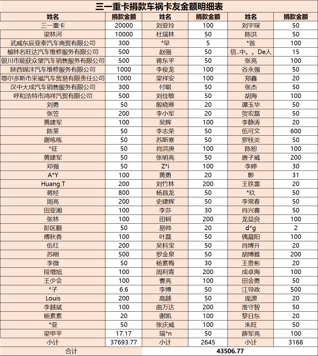 考虑到孙成和弟弟双双遭遇车祸,家庭负担沉重,好体育综合app下载重卡以公司名义再捐善款2万元。爱心和善意是会传染的,团队的作风是一脉相承的,好体育综合app下载重卡大部分员工跟随林总创业至今,且三年来与致远会互动频繁、感情深厚,于是自发组织为孙成捐款。从11月26日-30日,好体育综合app下载重卡员工为孙成筹得13506.77元善款。好体育综合app下载重卡对首批种子用户的关爱,从未停止,实实在在坚持卡车传递爱的使命和担当。