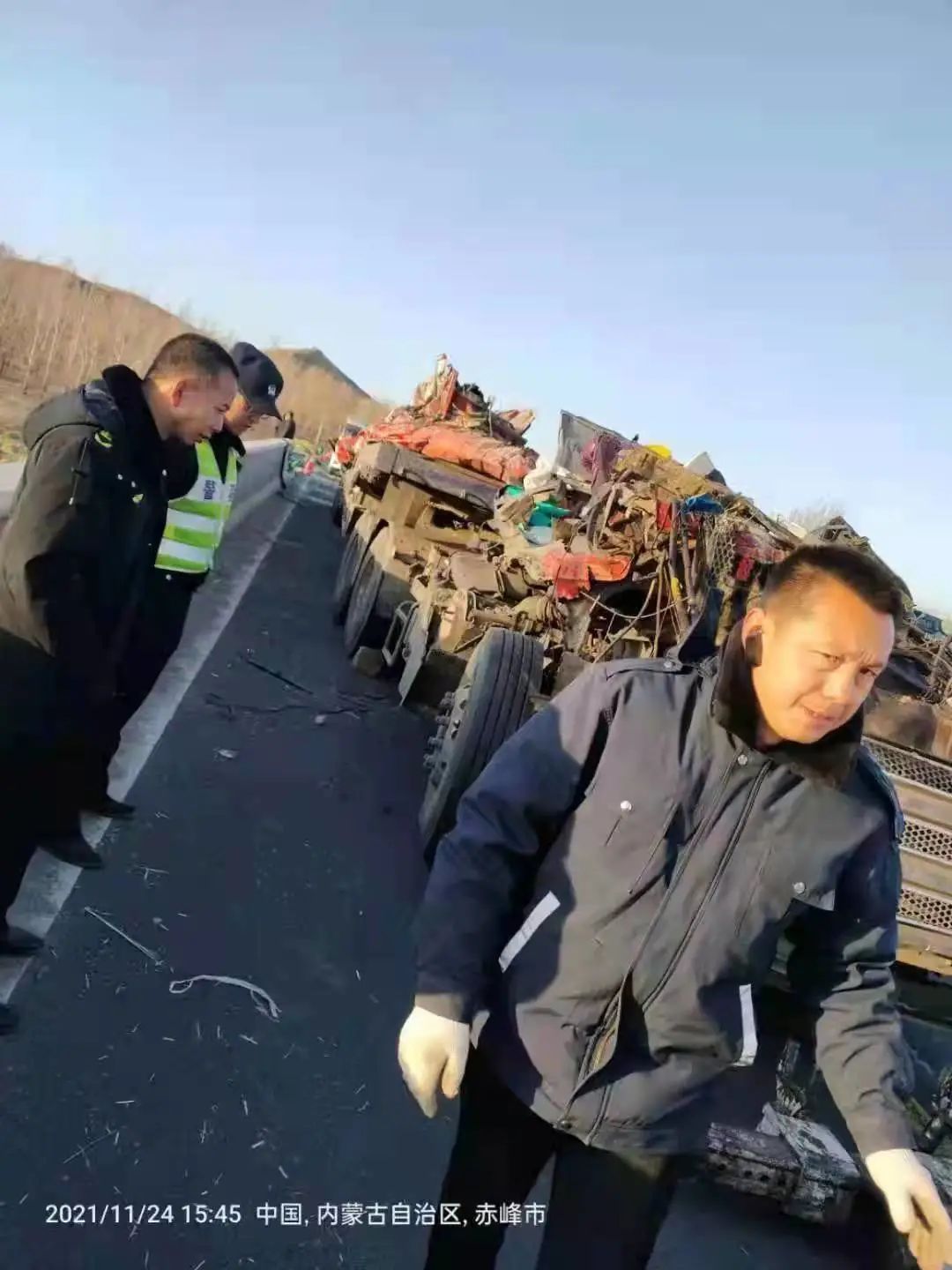 天有不测风云,11月24日,孙成和弟弟开着卡车途经内蒙古赤峰市巴林右旗大板镇206省道时,弯道会车发生严重车祸,车辆侧翻从路基上倒扣,连车带货一起重重砸在路基下。即使车辆倒摔、重压之下驾驶室外观严重变形,但驾驶室结实的内部结构给孙成和弟弟撑起足够的活命空间,被十几吨的重卡和货物压着,两个瘦小的身板,硬是捡回了两!条!命!