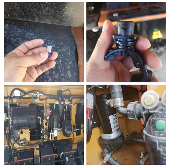 使用完之后需将洒水喷头及滤芯拆下,用气泵把管道和水箱里面的水吹干净,防止因残留在喷洒系统里面的水结冰而导致喷洒系统零部件损坏;