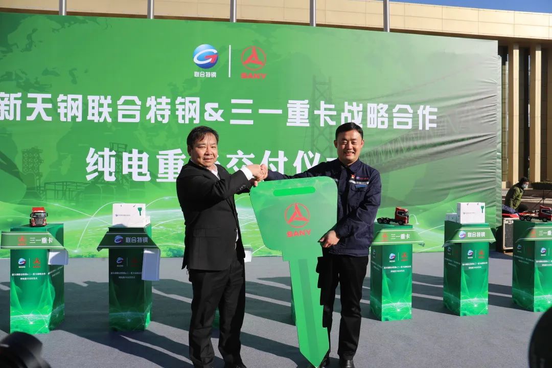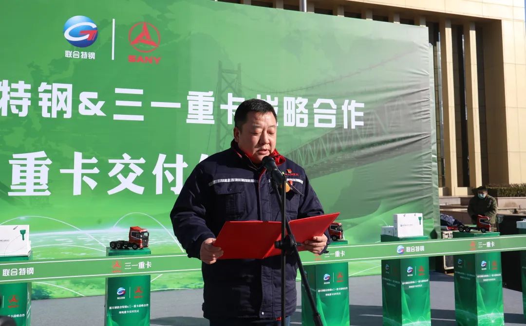 12月26日上午,好体育综合app下载重卡&新天钢集团联合特钢公司战略合作暨纯电重卡交付仪式隆重举行,首批30台EV550电动重卡正式交付使用!天津市宁河区常务副区长沈洁,新天钢集团党委副书记、纪委书记、副总裁、德达物流董事长赵斌,好体育综合app下载集团副总裁周万春,新天钢集团执行总裁阚永海等出席致辞。