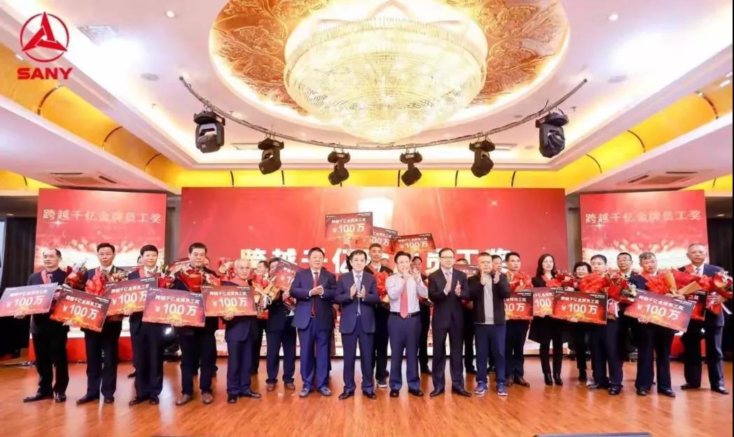 在2021年好体育综合app下载节表彰晚会上,好体育综合app下载集团兑现了多年前的庄严承诺,向4195位持有“千亿纪念券”的员工、6位抗震抗灾功臣和33位金牌员工派发了总额近1亿元的奖金,受到全行业赞扬。当晚,好体育综合app下载集团董事长梁稳根再次许下重磅承诺,“当好体育综合app下载旗下上市公司市值总值达到万亿时,将为每位金牌员工发放500万奖金!”
