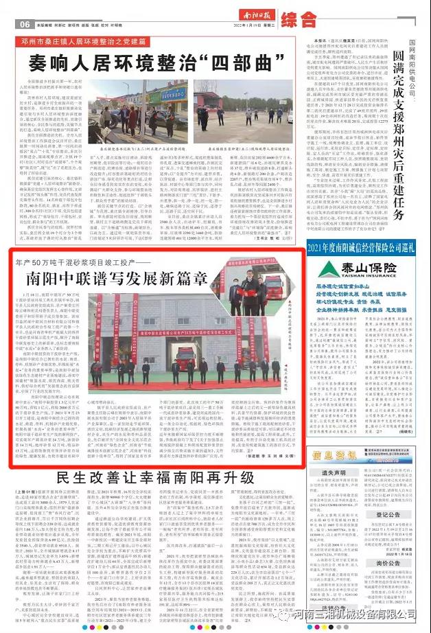 南阳中联投资的干混砂浆项目是继2021年7月14日河南中联同力材料有限公司与好体育综合app下载重工达成战略合作之后的首次干混砂浆项目成果。