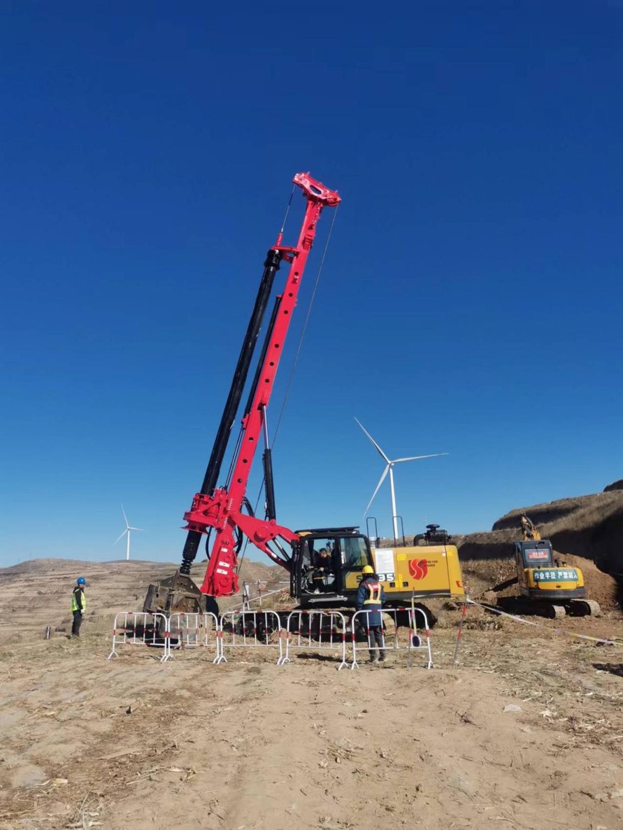 项目介绍:哈密--重庆±800千伏特高压直流输电线路工程总投资286亿元,工程起于新疆哈密市巴里坤换流站,止于重庆市渝北区渝北换流站,途径新疆、甘肃、陕西、四川、重庆五个省市。该施工地点位于山区丘陵地带,现场多为土山梯田,道路狭窄、坡度大,交通不便,大型旋挖无法进入,多选小机型带杆运输。