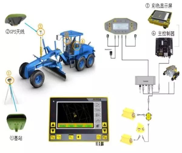 经系统处理,反馈给液压模块,液压模块控制铲刀提升油缸的升降,从而实现自动找平的功能。