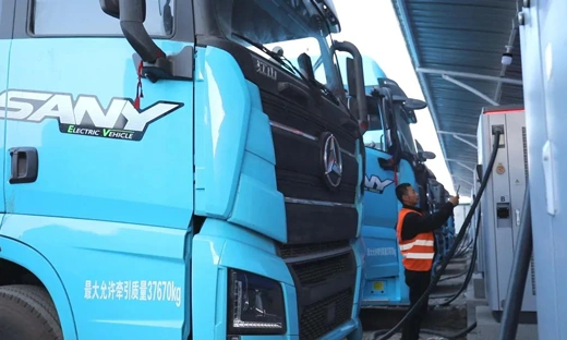 山东山峄建筑,枣庄电动重卡第一场景,单车月降本2万元