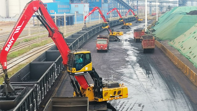 日照港对火车运输的煤炭进行卸载