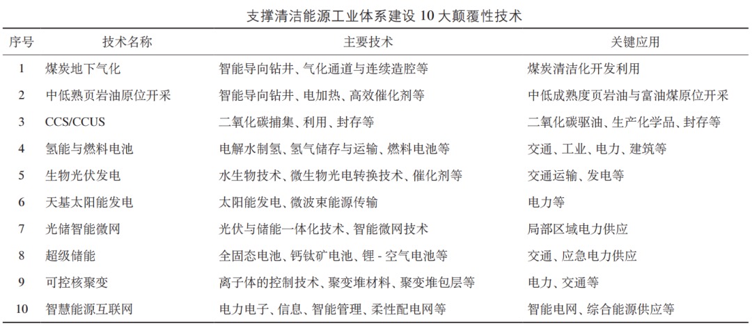 当前,可着力布局研究 10 大颠覆性技术,通过加快科技创新,有效助力清洁能源工业体系建设。