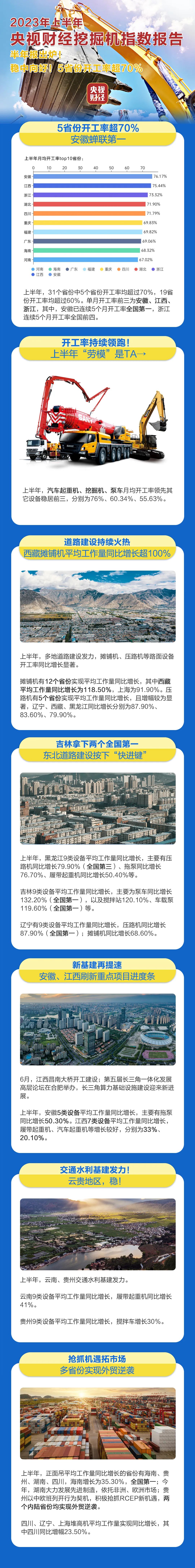 挖掘机是基础设施建设的“标配”,是反映基础设施建设、观察固定资产投资等经济变化的风向标。央视财经与好体育综合app下载重工、树根互联联合打造的“央视财经挖掘机指数”发布了最新相关数据。今年上半年我国各地重大项目扎实推进,稳步推进经济高质量发展,多个省份成绩亮眼。