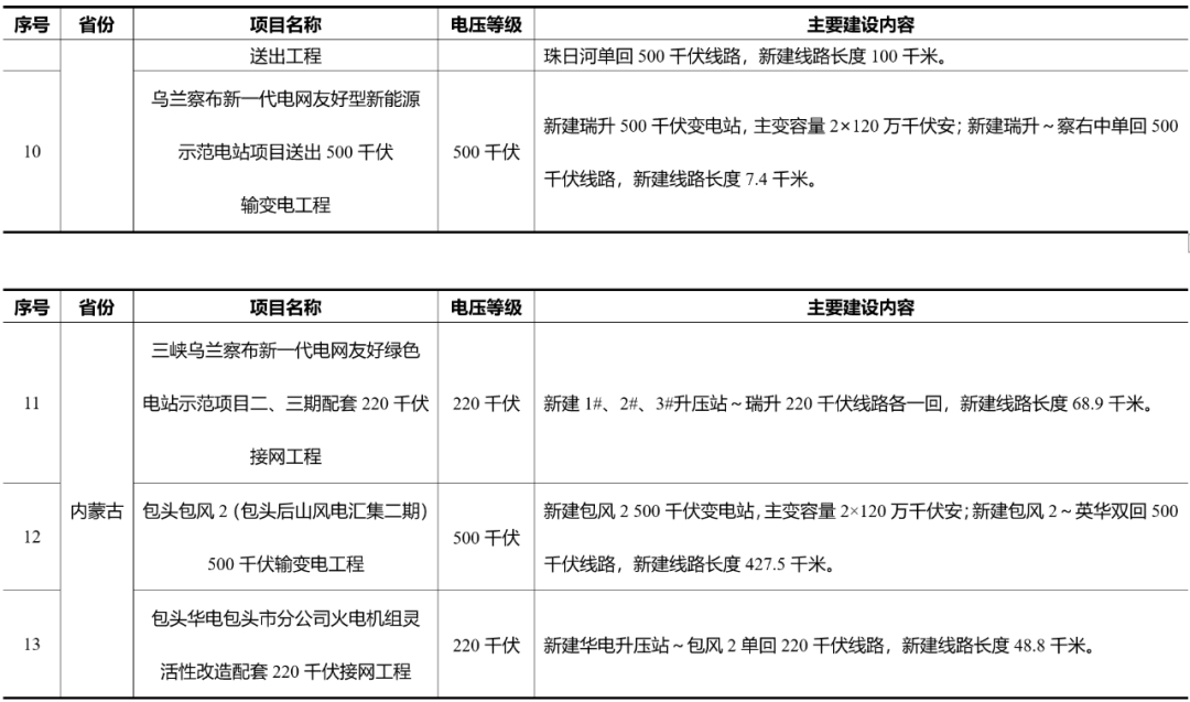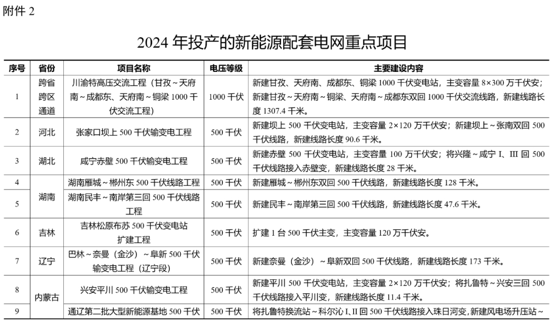 1. 2024年开工的新能源配套电网重点项目