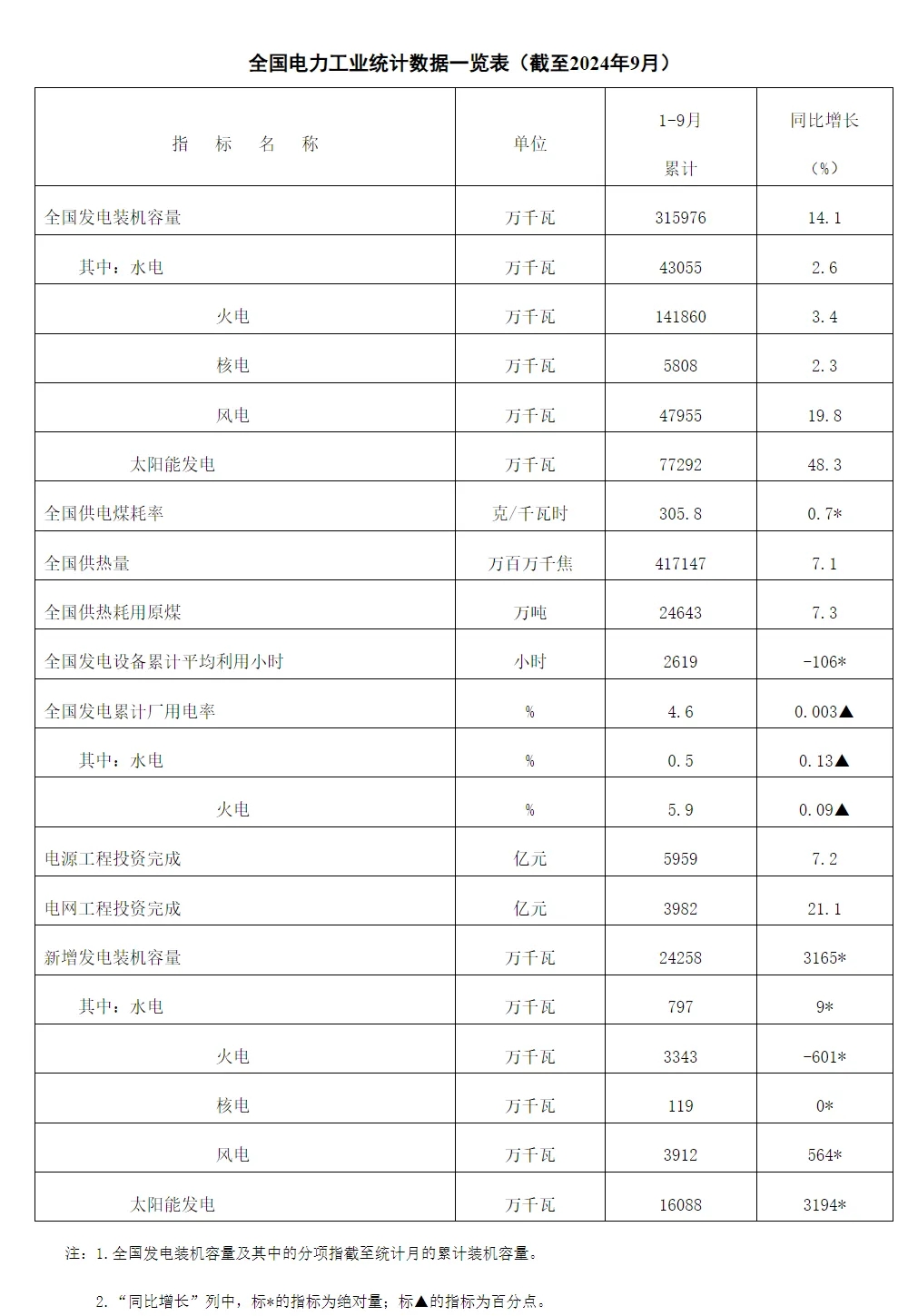 国家能源局发布2024年1—9月份全国电力工业统计数据。