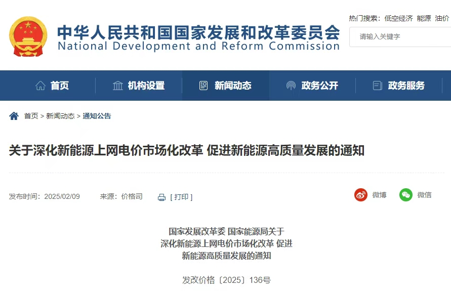 2月9日,国家发展改革委 国家能源局发布《关于深化新能源上网电价市场化改革 促进新能源高质量发展的通知》。