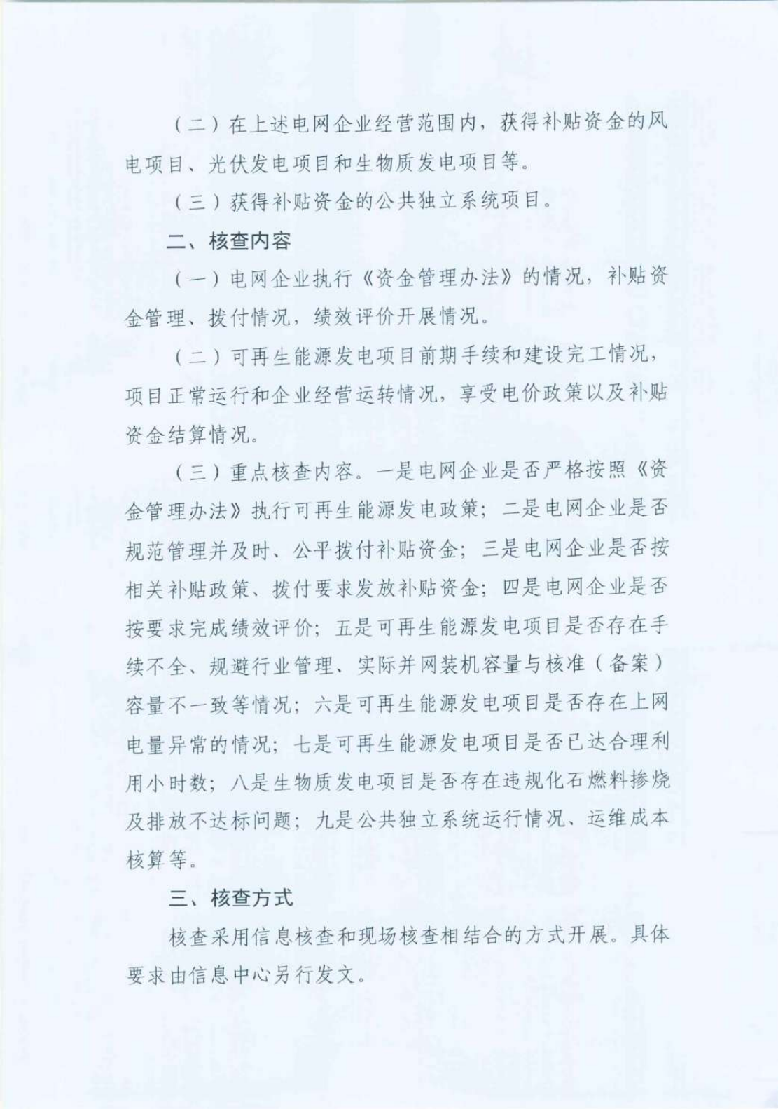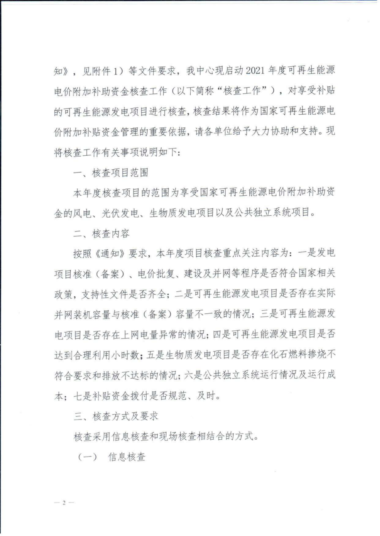 此次核查将采取信息核查与现场核查相结合的方式,各发电企业需要在8月10日前通过国家能源局可再生能源发电项目信息管理平台完成相关项目的信息填报工作。 根据《关于开展可再生能源电价附加补助资金核查工作的通知》的核查内容要求,重点核查内容包括9方面内容:一是电网企业是否严格按照《资金管理办法》执行可再生能源发电政策;二是电网企业是否规范管理并及时、公平拨付补贴资金;三是电网企业是否按相关补贴政策、拨付要求发放补贴资金;四是电网企业是否按要求完成绩效评价;五是可再生能源发电项目是否存在手续不全、规避行业管理、实际并网装机容量与核准(备案)容量不一致等情况;六是可再生能源发电项目是否存在上网电量异常的情况;七是可再生能源发电项目是否已达合理利用小时数;八是生物质发电项目是否存在违规化石燃料掺烧及排放不达标问题;九是公共独立系统运行情况、运维成本核算等; 基于信息核查工作成果,国家可再生能源信息中心将于2021年8月起组织专业人员分组开展项目现场核查工作,本年度项目核查重点关注7项内容如下: 一是发电项目核准(备案)、电价批复、建设及并网等程序是否符合国家相关政策,支持性文件是否齐全; 二是可再生能源发电项目是否存在实际并网装机容量与核准(备案)容量不一致的情况; 三是可再生能源发电项目是否存在上网电量异常的情况; 四是可再生能源发电项目是否达到合理利用小时数; 五是生物质发电项目是否存在化石燃料掺烧不符合要求和排放不达标的情况; 六是公共独立系统运行情况及运行成本; 七是补贴资金拨付是否规范、及时。