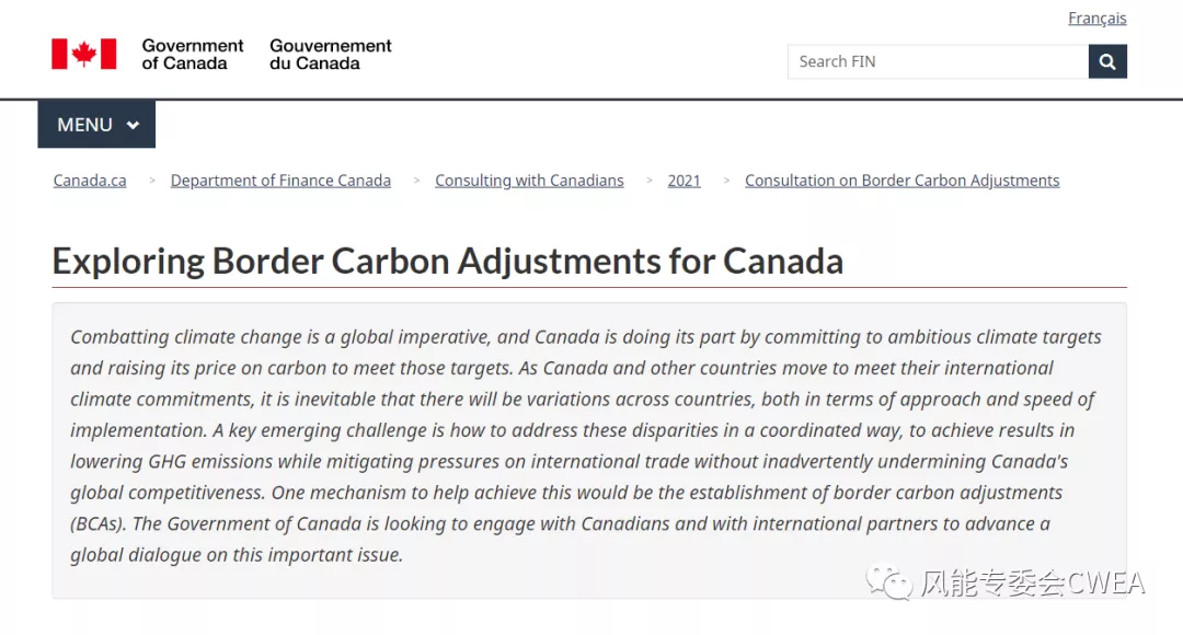 8月5日,加拿大财政部启动关于碳边境调节机制(BCA,Border Carbon Adjustments for Canada)的探索咨询并向国民征求意见。这意味着,自欧盟启动“碳边境调节机制”(CBMA)后,又一个中国的主要贸易伙伴启动了“碳税”机制。这一机制对从中国进口的无明确“绿色能源”标志使用燃煤发电生产的出口产品,可能会征收高额碳排放税。