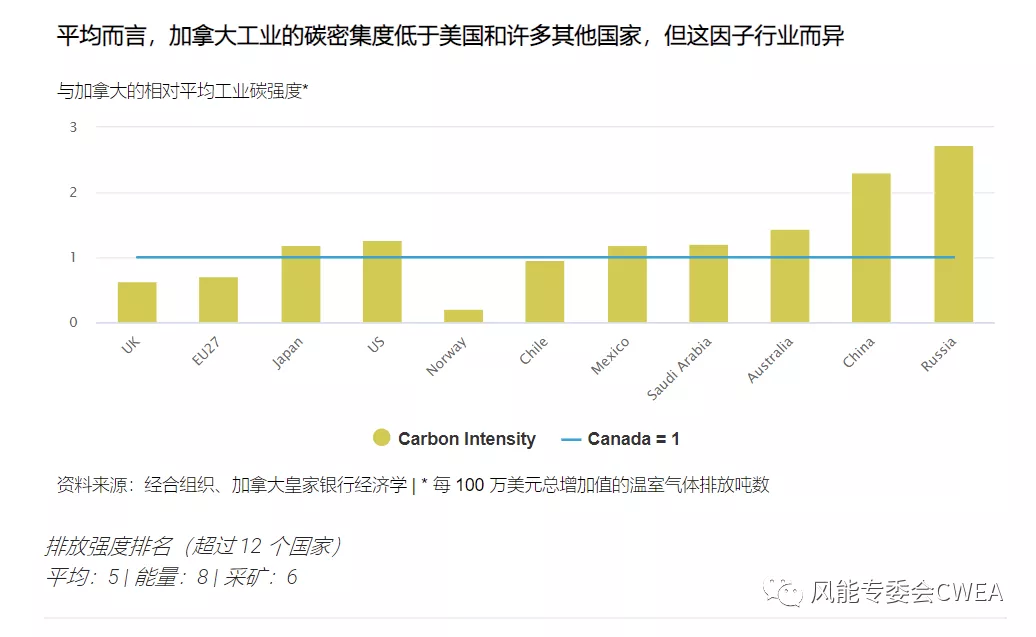 对于碳税的问题,加拿大皇家银行(RBC,Royal Bank of Canada)的一份报告指出,对碳密集型进口产品征税的想法虽然正在全球范围内获得认可,但这可能会损害加拿大的出口密集型产业。同上面的咨询报告一样,排放密集型和贸易暴露行业 (EITE)是受碳定价的约束风险最大的行业,但通常不会面临完全的排放定价。因此报告指出,加拿大虽然不会受到欧盟最近提出的世界上首个碳边境定价计划的沉重打击。但考虑到加拿大在排放方面的中等表现,更广泛地实施边境碳调节机制,可能对加拿大高度暴露于贸易的经济构成重大挑战。此外,虽然加拿大的国内碳定价制度应该有助于使其免受新的基于碳的贸易规则的影响,但各国使用边境碳税来惩罚气候落后者和地缘政治对手的努力可能会付出代价。报告建议,加拿大应推动边境碳税方面的国际合作,以保护国内产业,同时推动气候目标的国际进展。