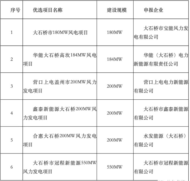 按照国家发改委、国家能源局印发的《关于2021年风电、光伏发电开发建设有关事项的通知》(国能发新能〔2021〕25号)和《辽宁省新增风电项目建设方案》(辽发改能源〔2021〕378号)等文件和营口市政府常务会议要求,营口市发改委委托中国水利水电建设工程咨询有限公司组织专家对申报项目及投资商进行客观评分,现将优选结果予以公示(公示期为2021年10月9日至10月11日)。