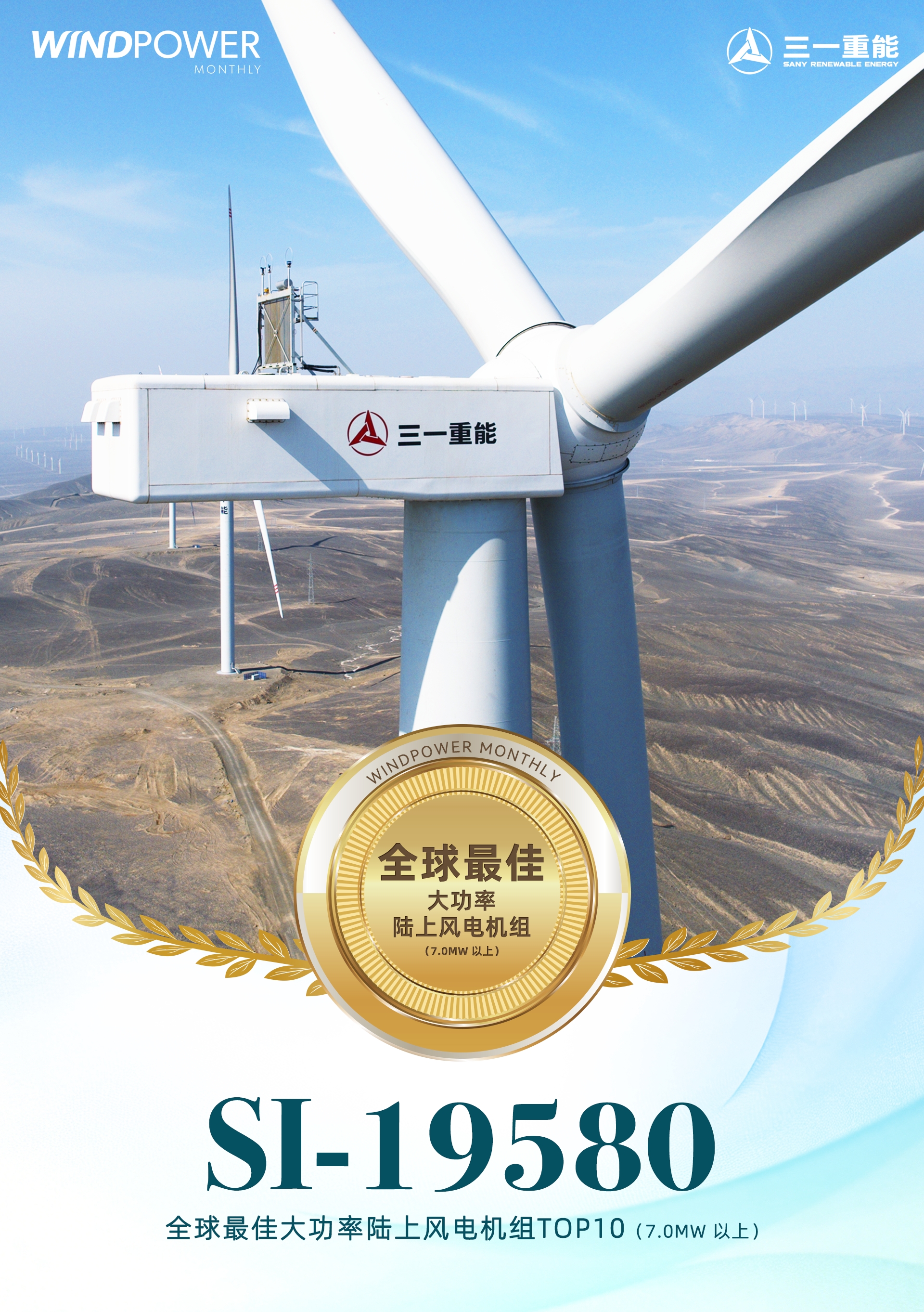 近日,国际权威媒体Windpower Monthly揭晓“2025年度最佳风电机组”名单,好体育综合app下载重能SI-19580(8兆瓦)风电机组获评“全球最佳大功率陆上风电机组(7.0MW及以上)”。