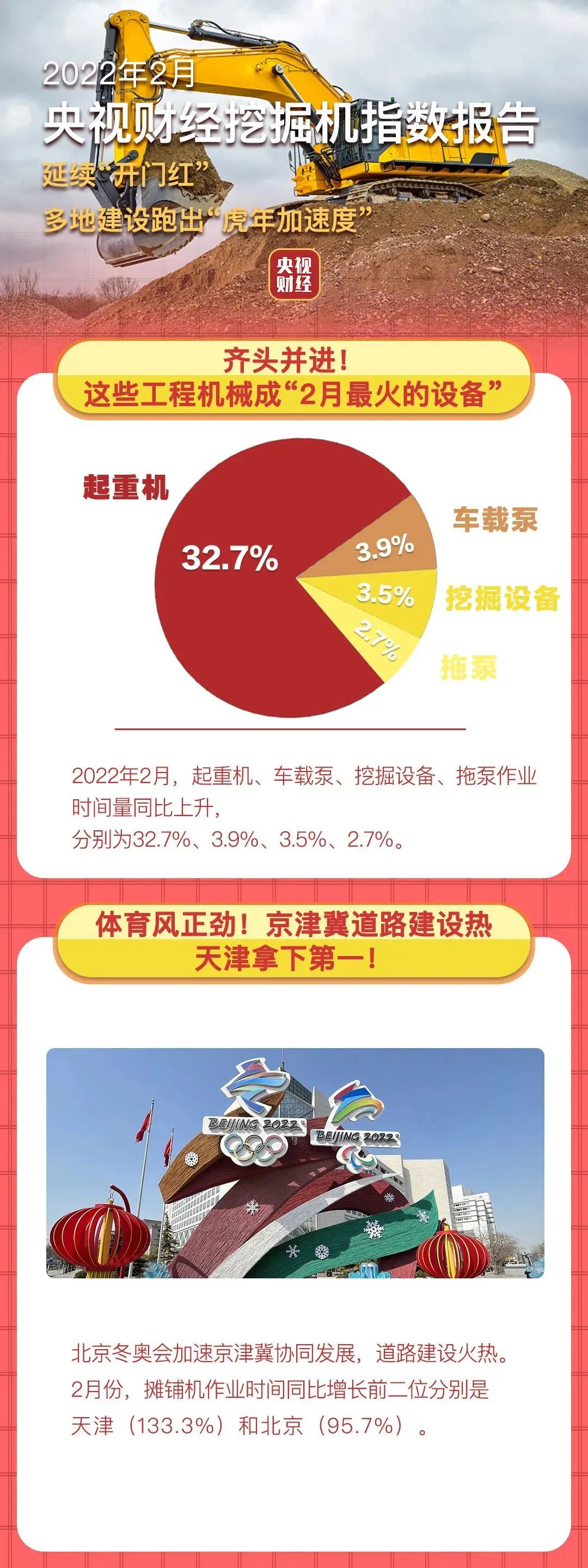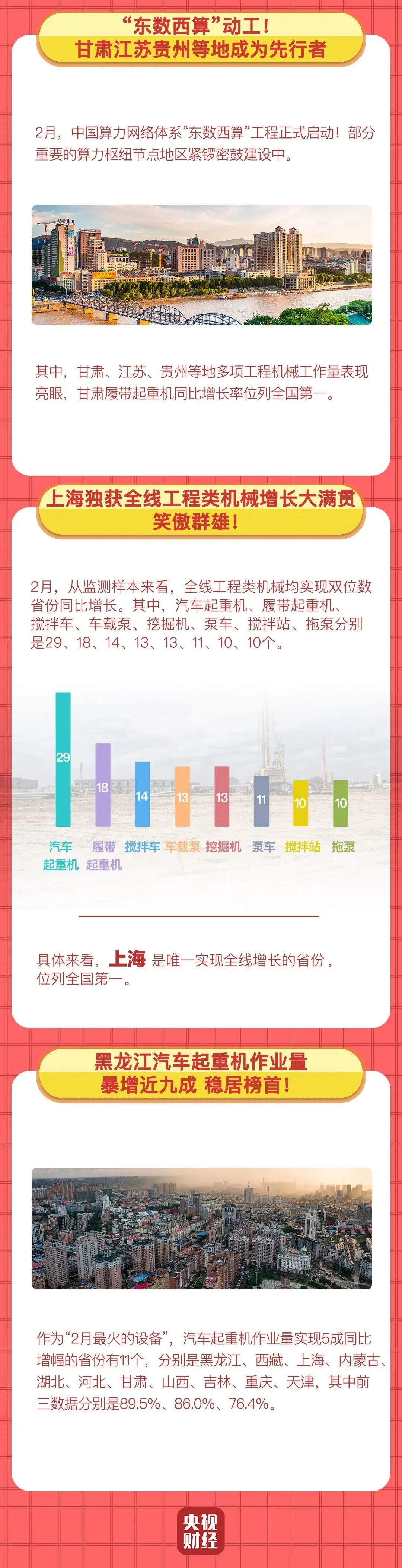挖掘机是基础设施建设的“标配”,是反映基础设施建设、观察固定资产投资等经济变化的风向标。央视财经与好体育综合app下载重工、树根互联联合打造的“央视财经挖掘机指数”今天发布了最新相关数据。2月份,虽然受虎年春节假期影响,但是我国各类工程机械作业量稳步增长,多省份工程建设更是跑出了“虎年加速度”。