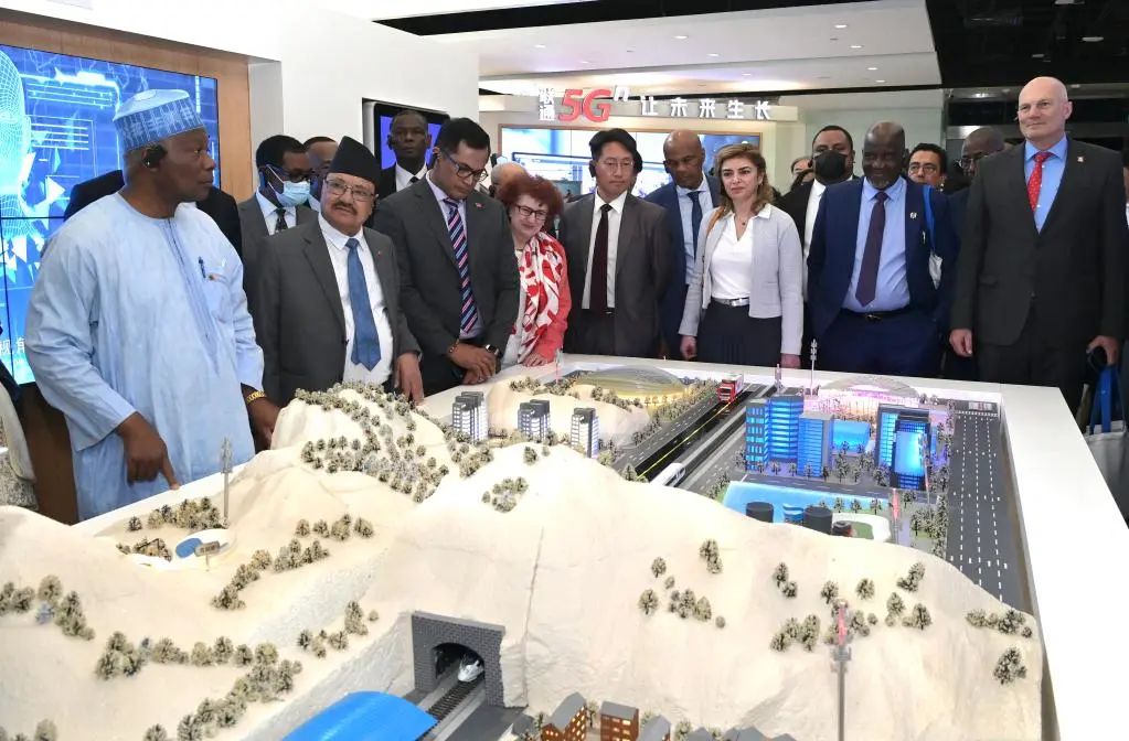 第一次近距离接触5G应用场景的博茨瓦纳驻华大使馆公使衔参赞莫洛华对展厅内5G赋能生产方式数字化转型的展示兴致勃勃。