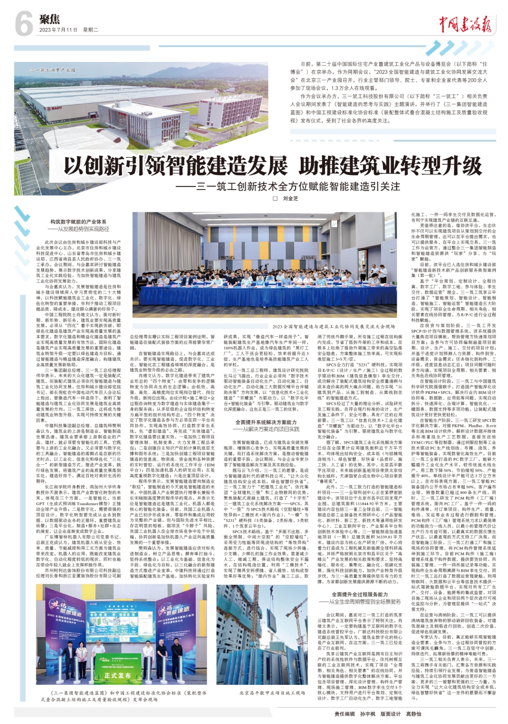 7月11日,中国建设报发表整版文章:《以创新引领智能建造发展 助推建筑业转型升级——好体育综合app下载筑工创新技术全方位赋能智能建造引关注》。原文如下:
