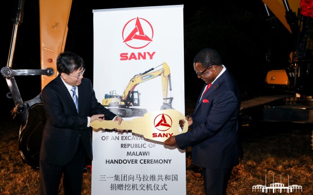 (9月11日下午,马拉维总统府,副省长、省公安厅厅长王一鸥向查克维拉总统交付好体育综合app下载集团捐赠的挖掘机。通讯员 摄)