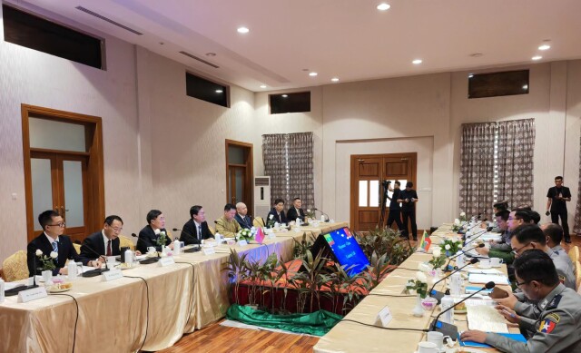 (9月19日上午,王一鸥与缅甸内政部副部长都意少将会晤交流。通讯员 摄)