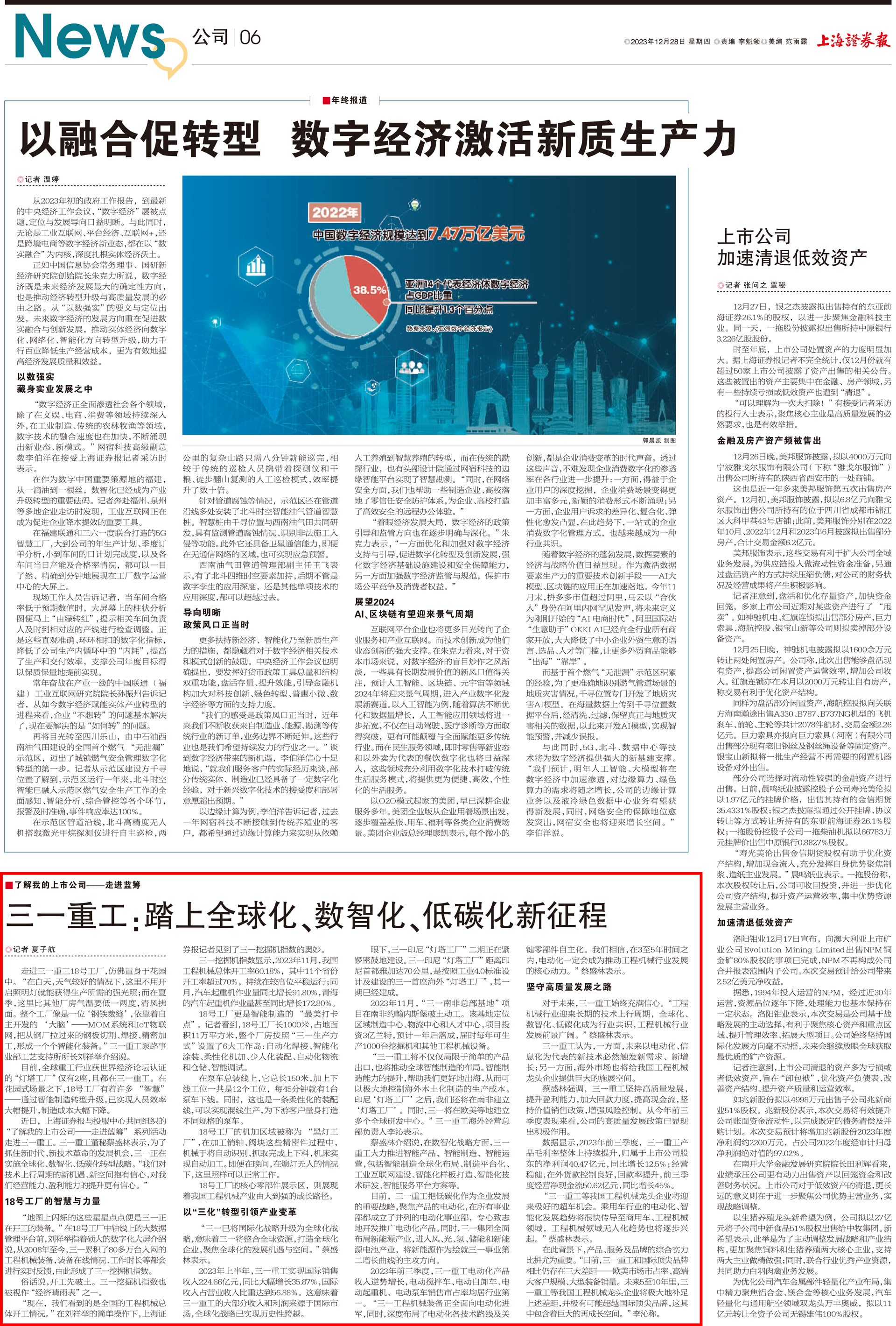 12月28日,《上海证券报》刊发《好体育综合app下载重工:踏上全球化、数智化、低碳化新征程》一文。作为“了解我的上市公司——走进蓝筹”系列报道之一,聚焦好体育综合app下载重工的数智化创新成果,并带领读者了解公司的发展战略与未来展望。