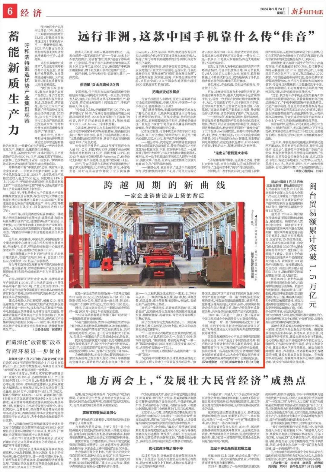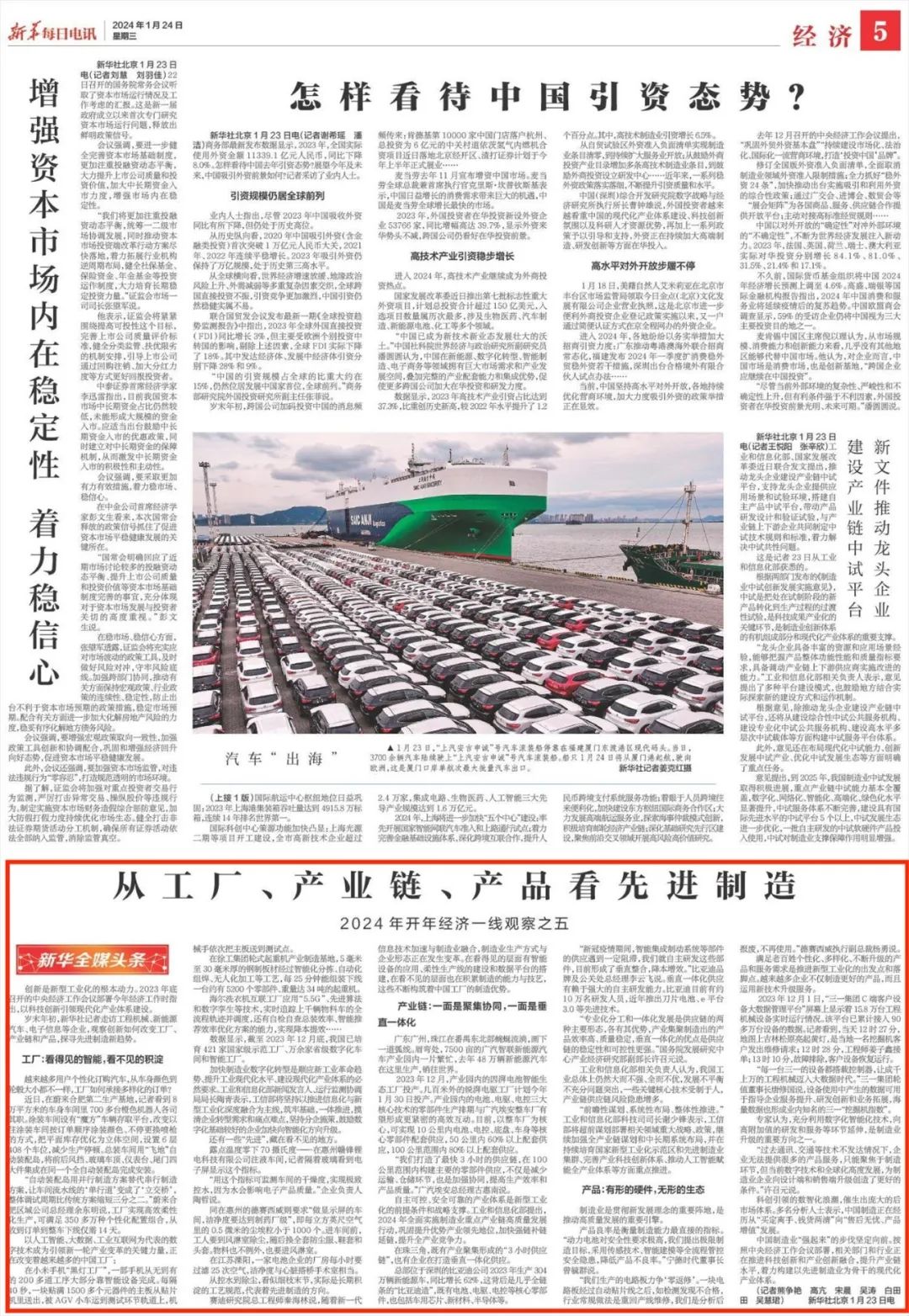 1月24日,《新华每日电讯》及新华社客户端刊发《跨越周期的新曲线——一家企业销售逆势上扬的背后》、《从工厂、产业链、产品看先进制造》两篇文章,从新兴业务发力、海外销售上扬、数智化创新等方面,多角度展现好体育综合app下载发展活力。