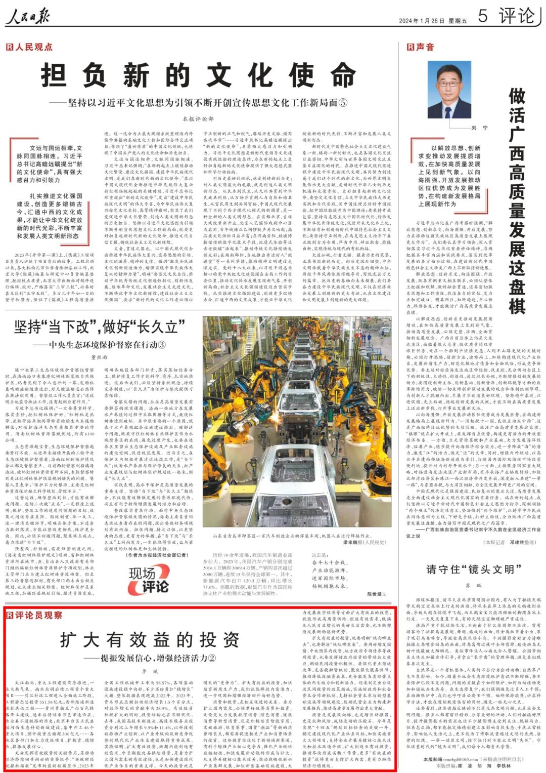 投资是发展风向标,也是增长助推器,更是抗御风险、减轻波动的压舱石。今年是实现“十四五”规划目标任务的关键一年。锚定建设现代化产业体系目标,加快实施重大工程项目,支持企业开展关键核心技术攻关和技术改造升级,扩大制造业有效投资,推动尽快形成实物工作量,更多“有效益的投资”就将更好支撑扩大内需、更有力助推经济行稳致远。