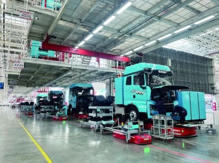 记者在好体育综合app下载重卡智能制造车间看到,200多台机器人与工人一起紧张地忙碌着,超过700台AGV(自动导引车)有序地穿梭;在发货场,等待发货的新能源重卡整齐排列,不同涂装色彩的重卡中有不少将发往海外。