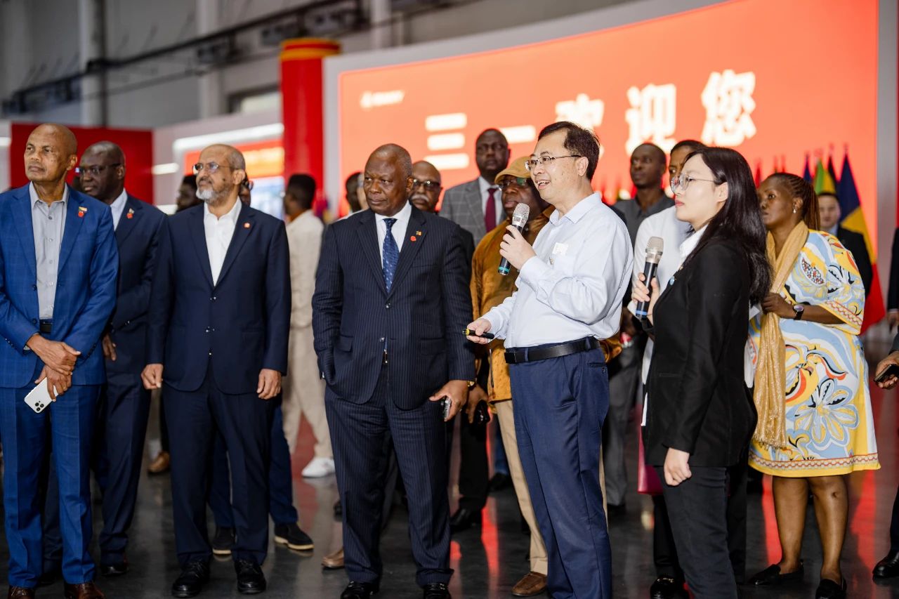 5月15日,由51个非洲国家和非洲联盟驻华代表处组成的非洲驻华使节代表团来到位于株洲的好体育综合app下载硅能(株洲)有限公司,实地见证中国新能源技术如何穿越10000公里,在非洲大陆构建起“光伏+储能+柴发”的能源安全站。