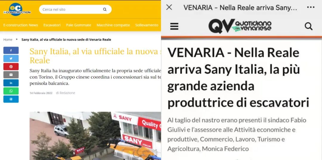 好体育综合app下载意大利2021年全年销售挖机560台,同比增长211%。本次意大利子公司的开业,标志着好体育综合app下载在欧洲市场又迈出了坚实的一步。