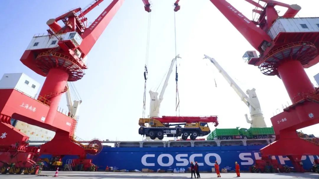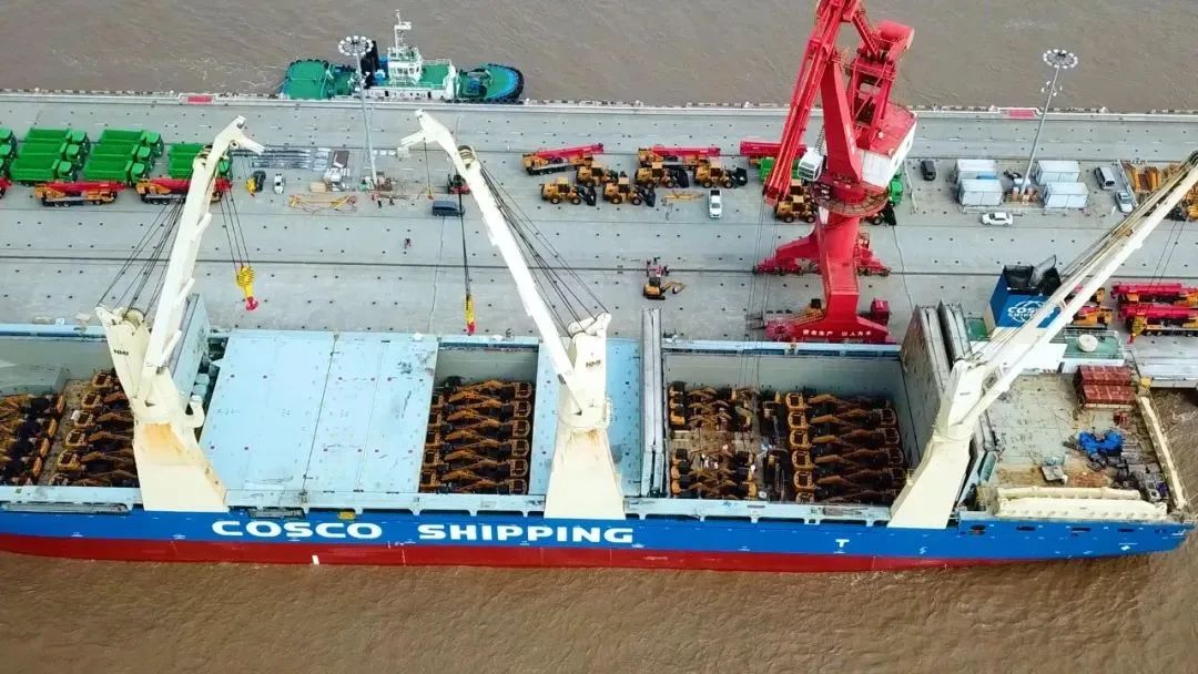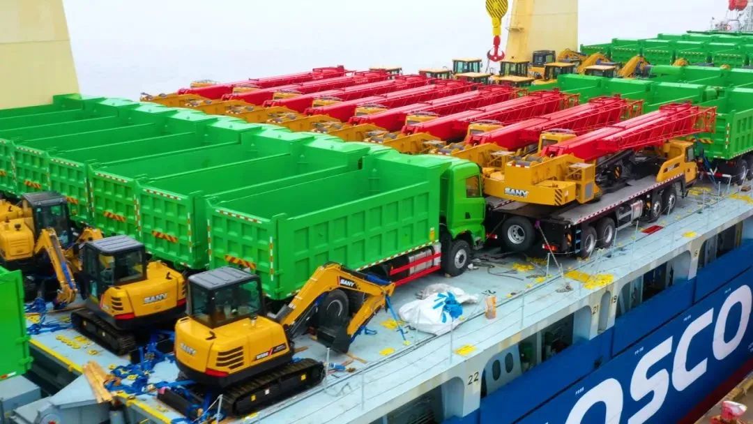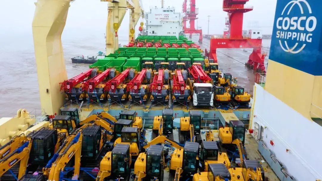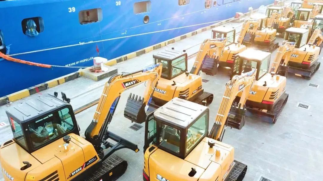 近日,随着一声高亢的汽笛鸣响,一艘满载着300多台好体育综合app下载挖掘机、自卸车、起重机等工程机械的巨轮,从上海南港码头扬帆起航,将“好体育综合app下载制造”发往世界各地。
