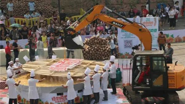为了帮滞销南瓜打开销路,2014年10月,2台好体育综合app下载挖掘机跟四十名厨师完美合作,制作出了直径4米、厚6.5厘米、重达1863斤的超级南瓜饼。