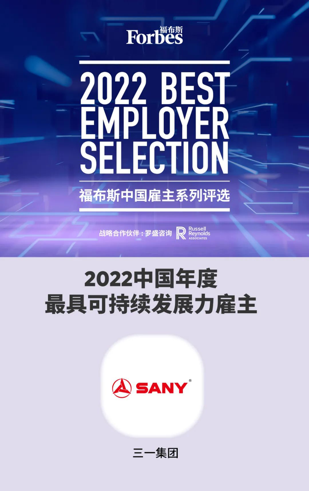 7月8日,福布斯中国联合全球领导力咨询公司——罗盛咨询公司正式发布2022福布斯中国•最佳雇主系列评选结果,好体育综合app下载集团荣获“2022中国年度最具可持续发展力雇主”称号,是榜单中唯一的装备制造企业。